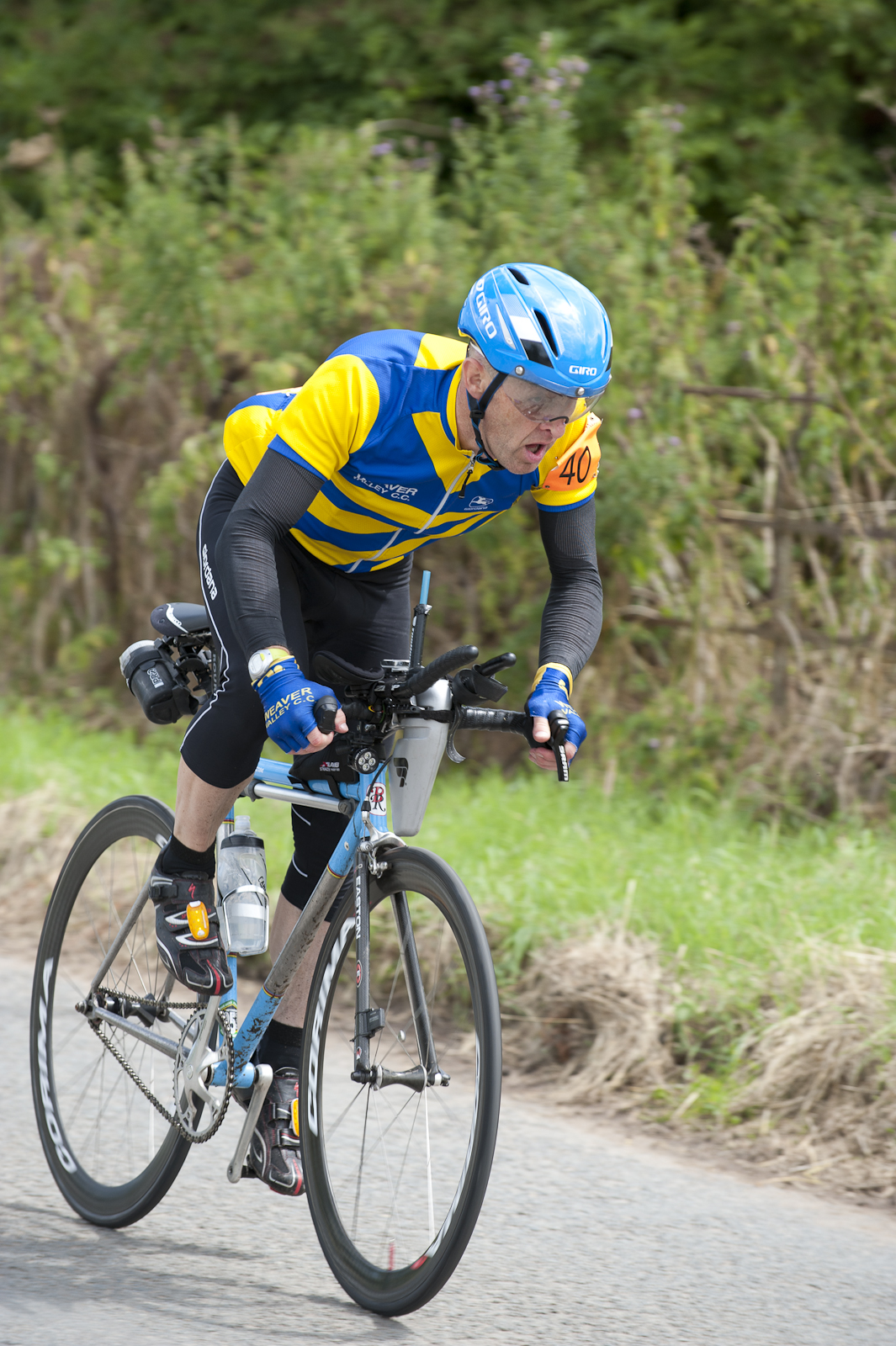With only about a lap to go, we moved on again to the main road, and Dave came around, looking in a world of hurt, still crouched, still churning, with one bloodshot eye…