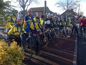 Reading Time: 2 minutes‘Twas a beautiful day for a ride: blue skies, sunshine, not too cold. We rode to Holt via Peckforton and Tilston, with Kev setting the pace, helped in turns by John Conboy and Greg. We all kept together well, with a pace steady enough for conversation (maybe induced by the hangovers that 60% of the bunch seemed […]
