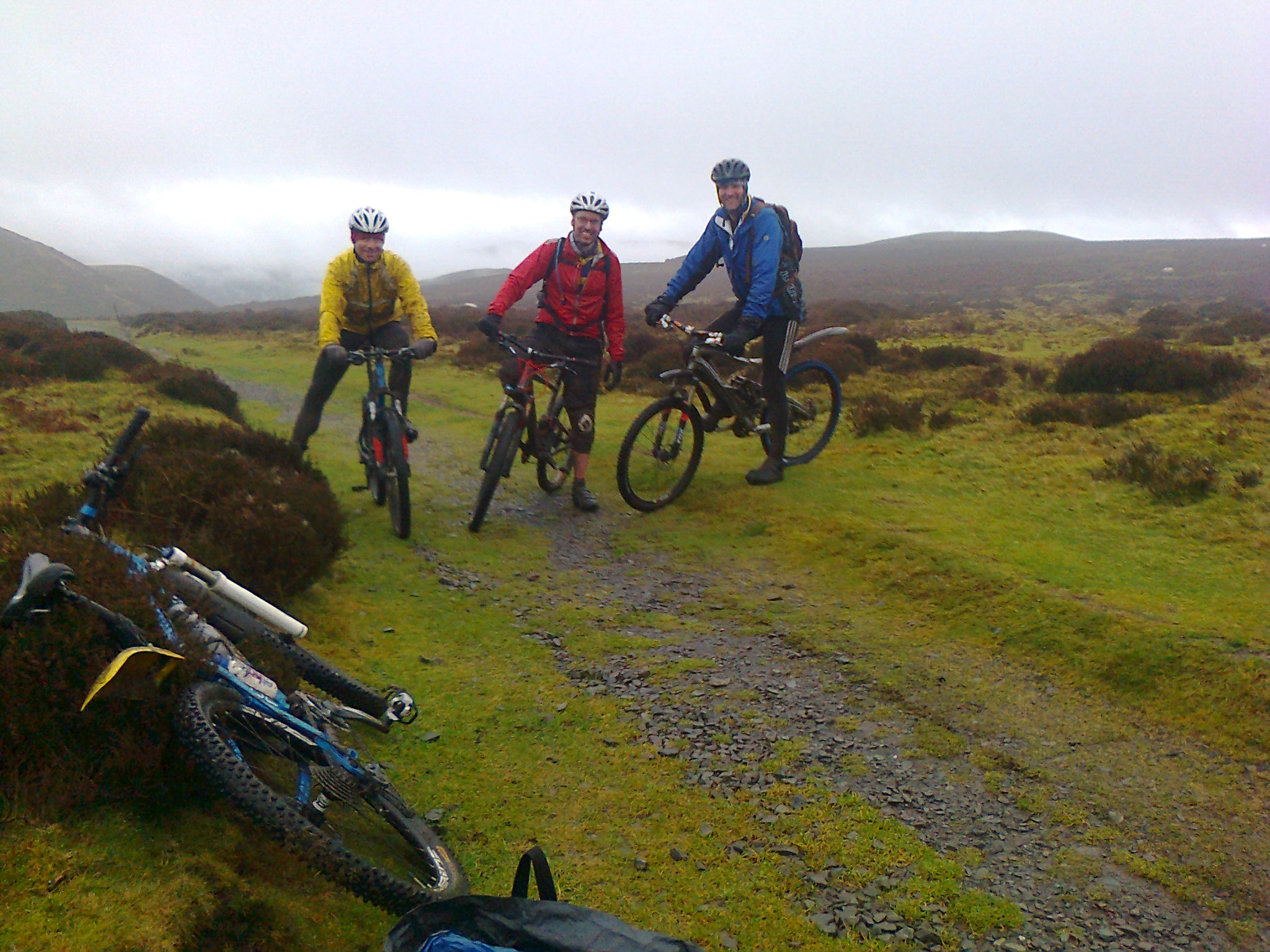 Reading Time: 2 minutesSaturday started wet and it stayed that way. Richard led us on one of his fantastic “possibly rideable” routes from Trefriw via the steepest road I’ve riden up in years to Llyn Cowlyd where we followed the bridleway along the shore. Kev U tried his best to prove it rideable, but even he had to […]