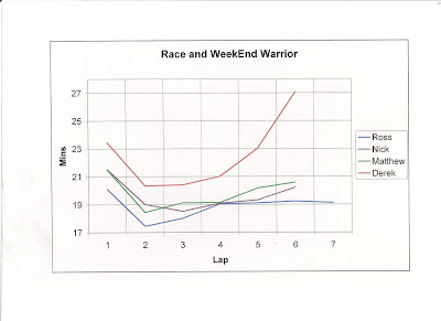 Thanks for your analysis Kevin, but I can confirm that it wasn't just Derek who died on the last lap! Thanks for the graph too which seemed to show that we all did lap 4 in around the same time.