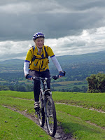 After a very pleasant lunch at the Loggerheads Country Park cafe Jon, Kevin, Jack and I set off to do a bit more. 1000 feet of climbing later and Jack’s legs began to protest – hardly surprising after a full morning’s ride, so he and Kevin peeled off while Jon and I rode one of the permissive routes over the shoulder of Moel Famau with a superb grassy descent to the west. The only trouble was that left a gruelling climb back up and over the ridge before we could descend towards Cilcain and the lanes back to Loggerheads. Thanks also to Andy B for the additional pics.
