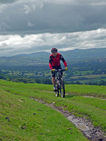 It was a great ride and the reduction in tyre pressure paid off. Not sure where we went wrong after leaving Nick and Jon to "press on" to the summit but we found some tricky decents and tracks. When it says "No Wheels" does that apply to mountain bikes as well??