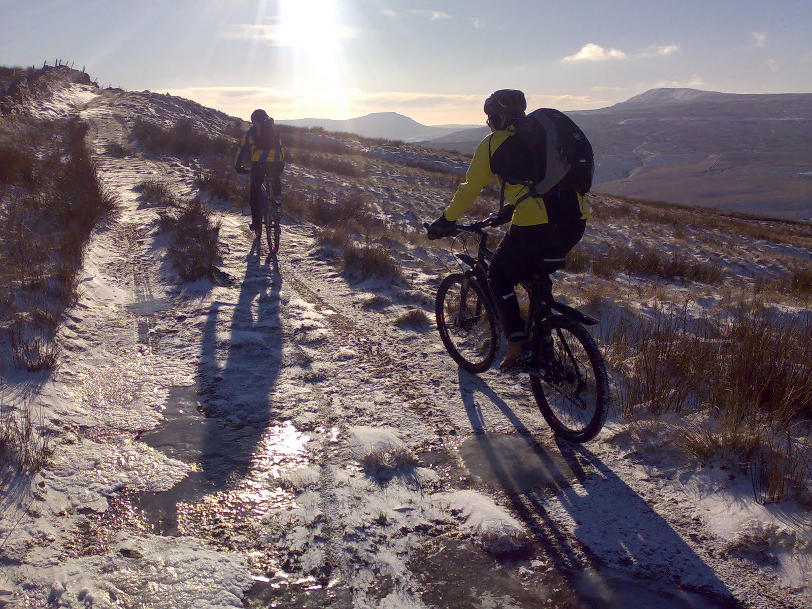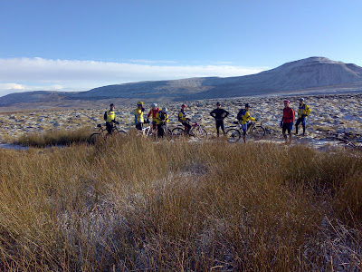 Thanks to Richard and Kev for devising some interesting and ridable circular routes. Saturday’s took us up the long steep road climb past Dent Station, then on tracks traversing Brant Side with spectacular views ahead to Ingleborough – Lew (the gaffer) and Ian below