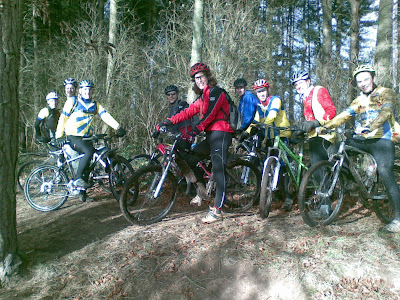 What a cracking day! Sunshine, singletrack and serious fun in the mud. 11 starters from the cafe including Paul, proving that he can ride the trails just as well as the boards. He’ll be coaching us at Thursday’s track night too. This was a regrouping spot deep in the forest – as you can see it was smiles all round.