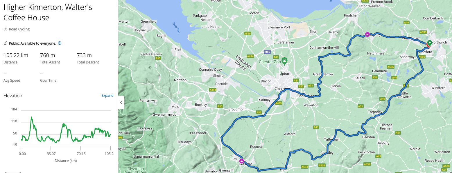 Long ride to Walter’s Coffee House, Higher Kinnerton