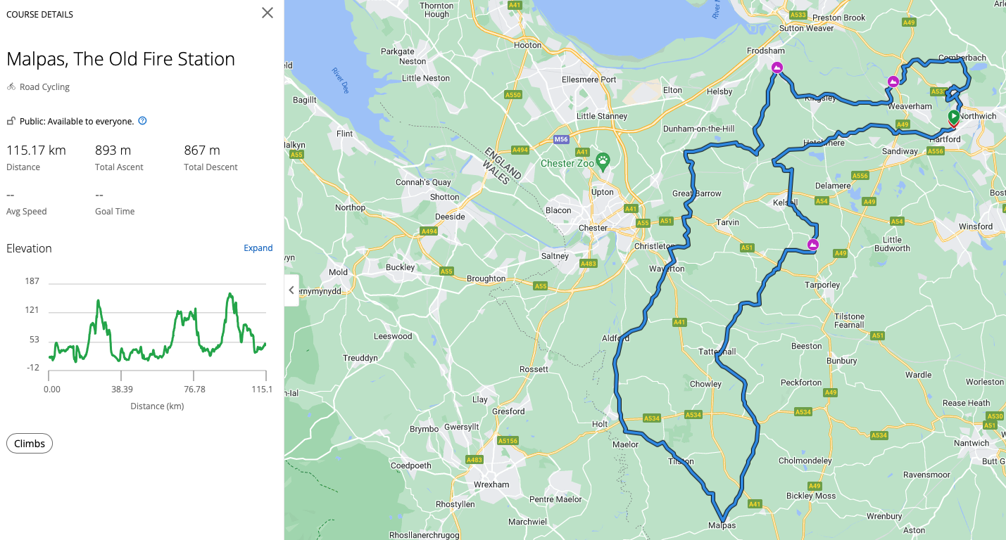 This is a 3 star ride. The cafe is at around 42 miles and the total distance is around 70 miles.