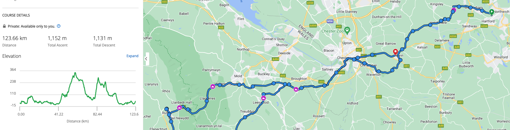 A 4 star ride, some long, draggy hills. Cafe after about 48 miles, total distance around 90 miles.