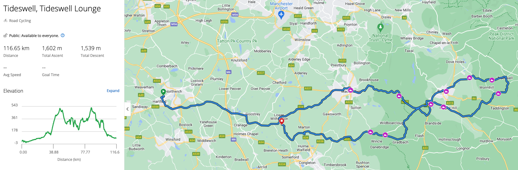 A 5 star hilly ride to direct to Tideswell via Macclesfield and Buxton.