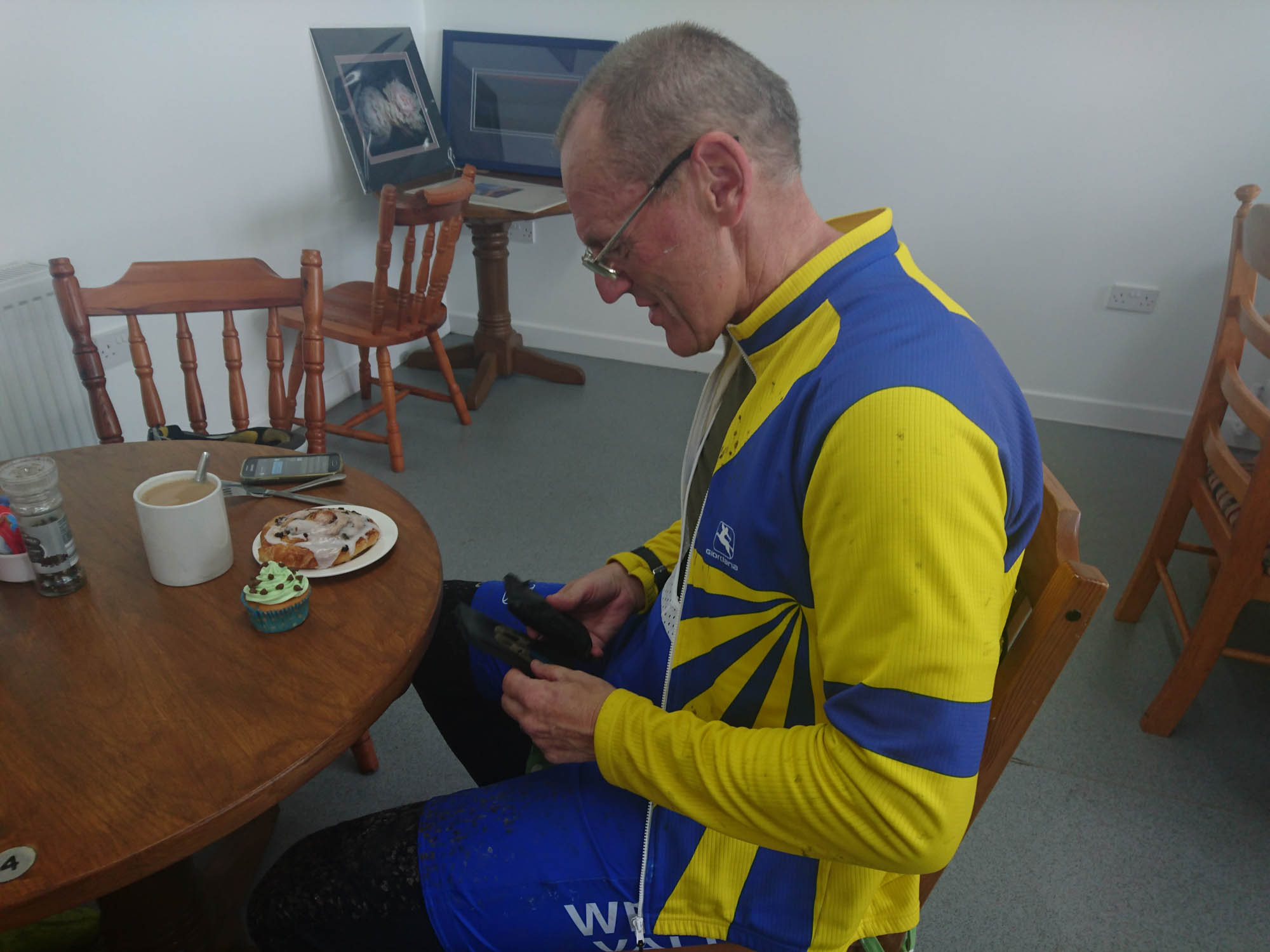 Net’s cafe was a most welcome sight, and the almost empty and warm comfortable confines of the cafe had us all grinning inanely, ready for food (it was getting on a bit and much later than we might usually stop at a cafe on a normal run).