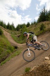Saturday turned out to be a fantastic day for riding the purpose built red and black graded trails at Gisburn Forest. It’s a shame no-one else made it, but there were plenty of other groups riding the trails to keep me company. There are some fairly technical rocky sections and lots of very twisty bits through the forest, which is very dark in places. Once you have reached the summit though, it gets much better with plenty of flowing berms including those in the picture (top) which must be the biggest berms in the country – a bit like a half-pipe. Definitely worth another visit soon, see http://www.forestry.gov./website/recreation.nsf/LUWebDocsByKey/EnglandLancashireNoForestGisburnCoc