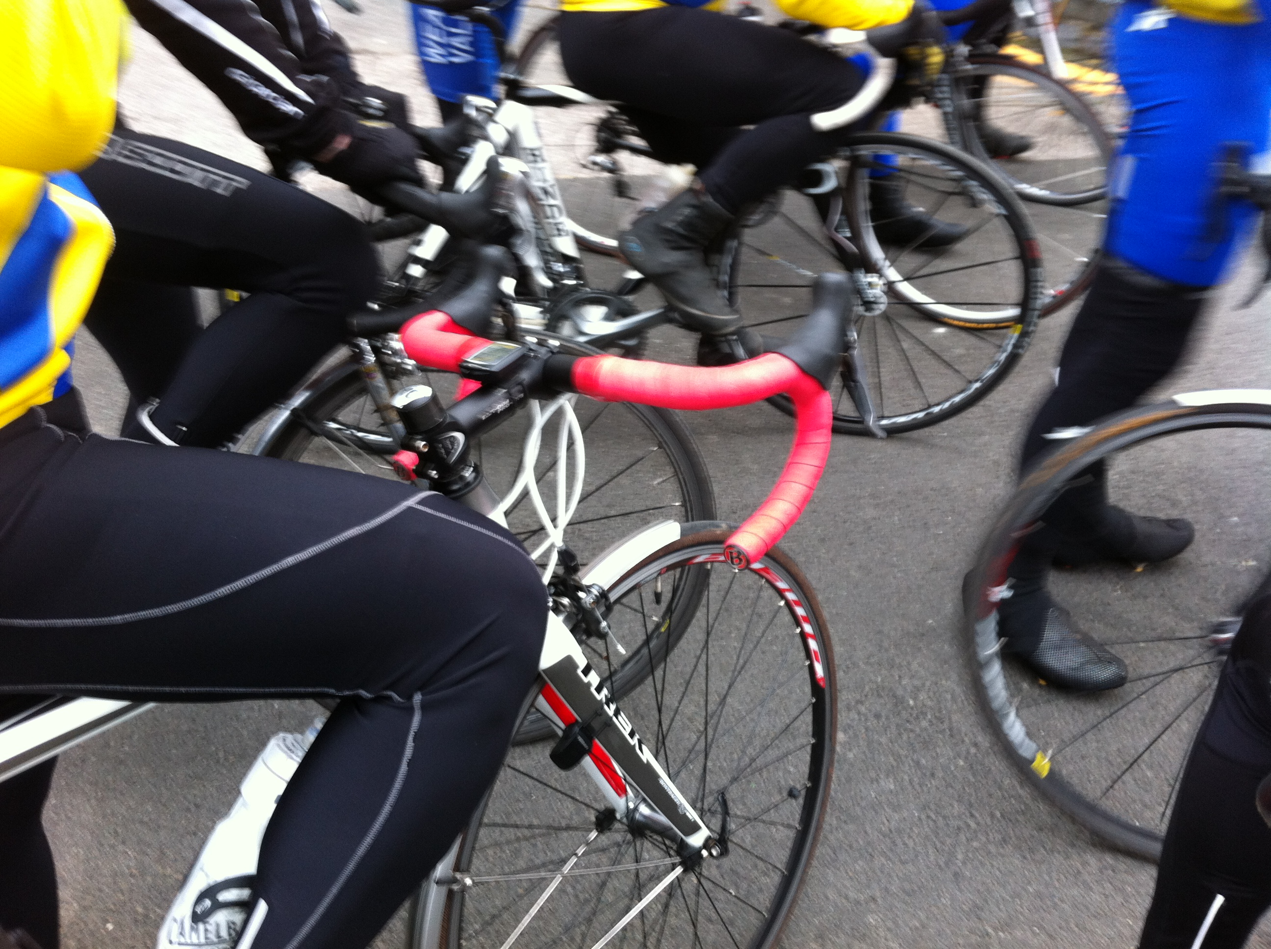 Whilst we were waiting, we were treated to up-close scrutiny of Kev’s nice new red (pink) handlebar tape.