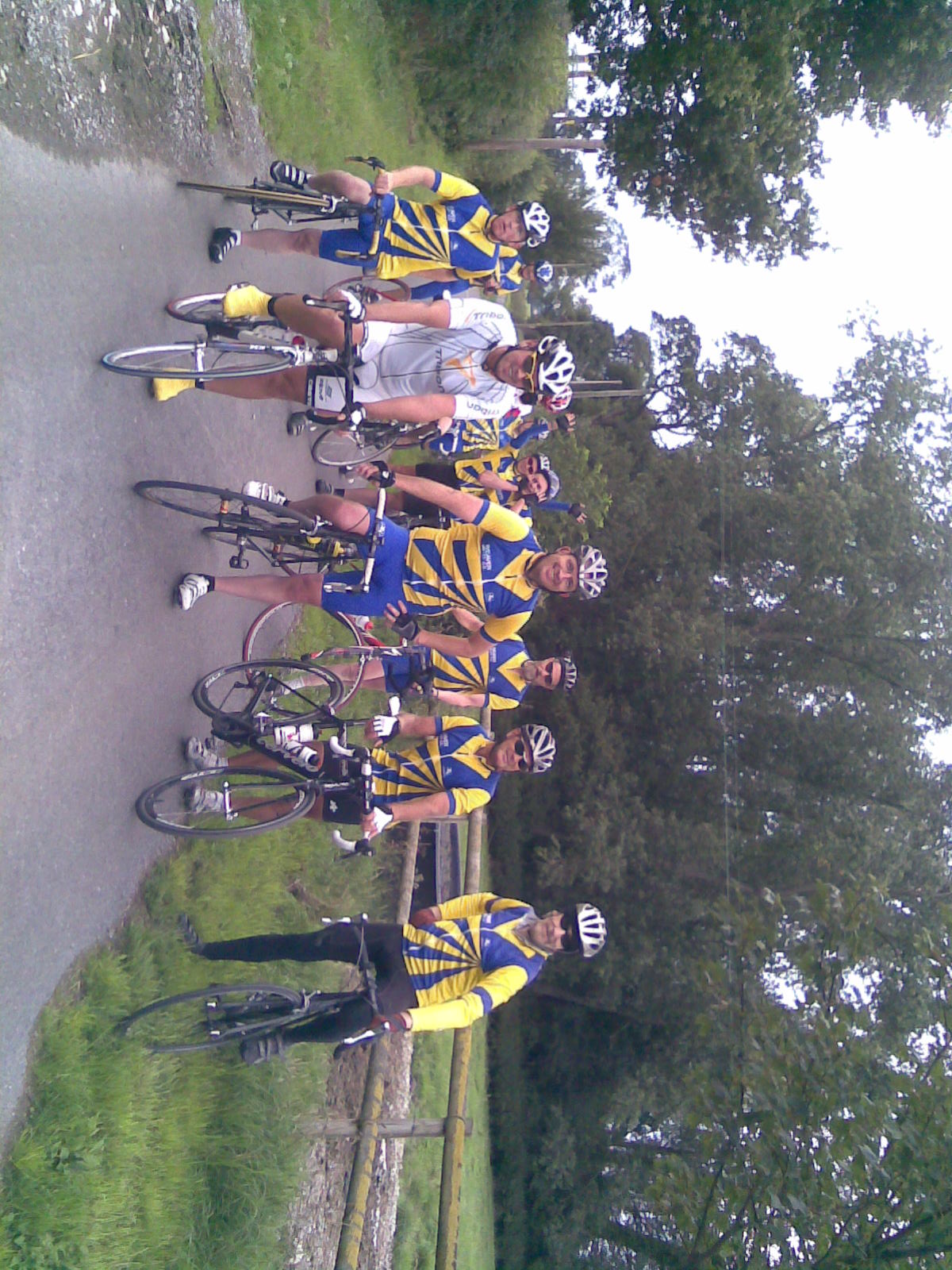 This was one of the best club runs I’ve done, with a baker’s dozen making it to the cafe – Vince, Kev C, Kev U, Keith, Chris, Julian, Jack, Martin, Dylan, Jed, Ian, Karl and me. (Craig and Chris L peeled off on the way there.) It was a long and hilly route but despite a mix of fitness, age and experience, we all stayed together all the way there and all the way back, which is exactly how club runs should be – and a great day we had of it: good riding, beautiful quiet country roads and good chats (at least on the flat bits!) We rode out via the route we normally do on the Llanberis weekend, (Chester, Higher Kinnerton, Penyffordd and the big hill up from Pontblyddyn), but then taking a right at Rhydtalog onto a fabulous 5 mile descent towards the cafe. On the way back Ian turned right at the Rainbow and introduced us onto lovely (but undulating, with lots of gratuitous height gains and losses) minor roads and eventually (after some navigational debates and reference to GPS) back down to the welcome flatness of the Cheshire plain, and so home via Holt, Tattenhall and Tarporley. We got back at 4.45 and I had 96 miles and an average speed of 16.4mph on my computer, which wasn’t bad going considering all the hills. Thanks to everyone for a great ride and great company, and a mention in dispatches to Dylan who shows incredible stamina, speed and strength for a 14 year old.