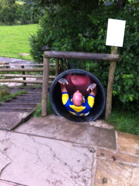 After Lunch, with the sun trying to break through the clouds, Max wanted to play on the slide, the sign said he had to be accompanied by an adult, as clearly, Max isnt one!, with Carol being the closest thing to an adult present (and she shouts loudest), it was left for her to look after him. He had two goes, one traditional and one headfirst.