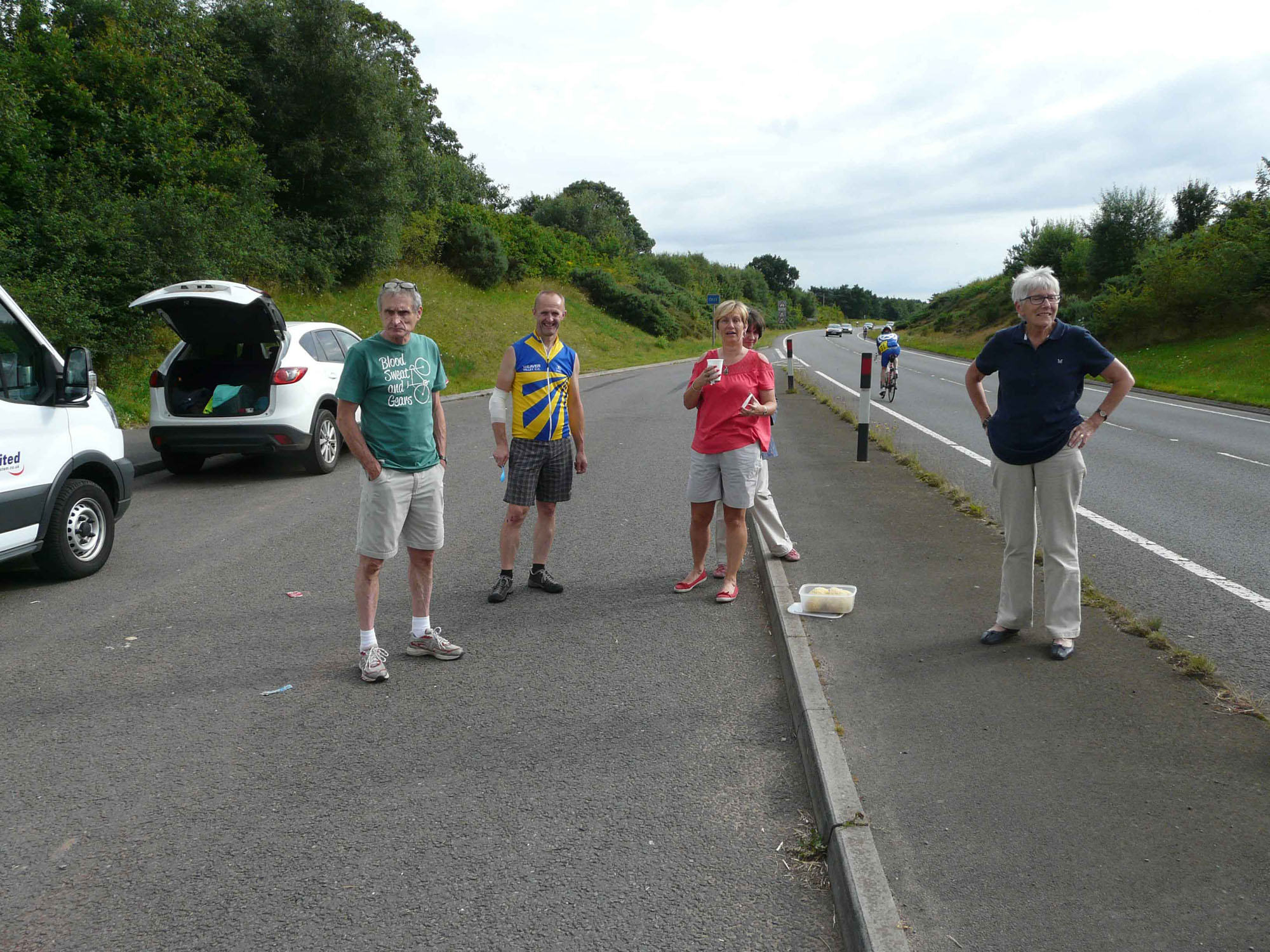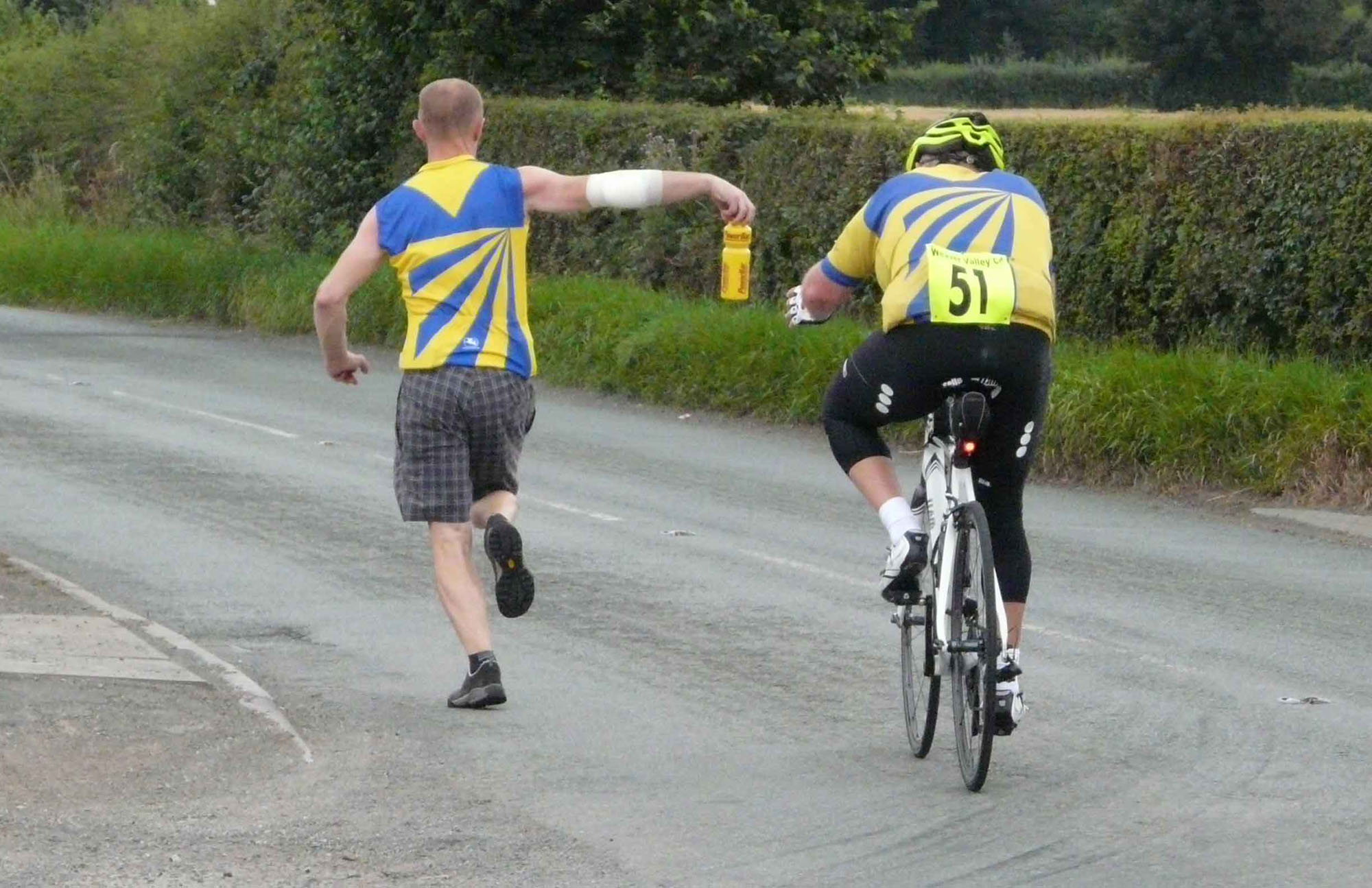 Shortly after, Dave offered me a bottle, which I refused, as I hadn’t started the last one, ‘what’s he offering me a bottle for’ I thought, ‘he’s only passed me this one about 10 mins ago’, he hadn’t, afterwards I found out that he’d passed that one an hour and a quarter before…I hadn’t drunk or eaten in all that time.. FATAL. Dave shouted at me out of the van that I needed to keep drinking! .. I’d sort of gone into auto pilot mode.. I knew it was time to call for an energy/caffeine drink as the road signs had started to sway like trees. Fortunately, I managed to pull things back a bit for the last hour.