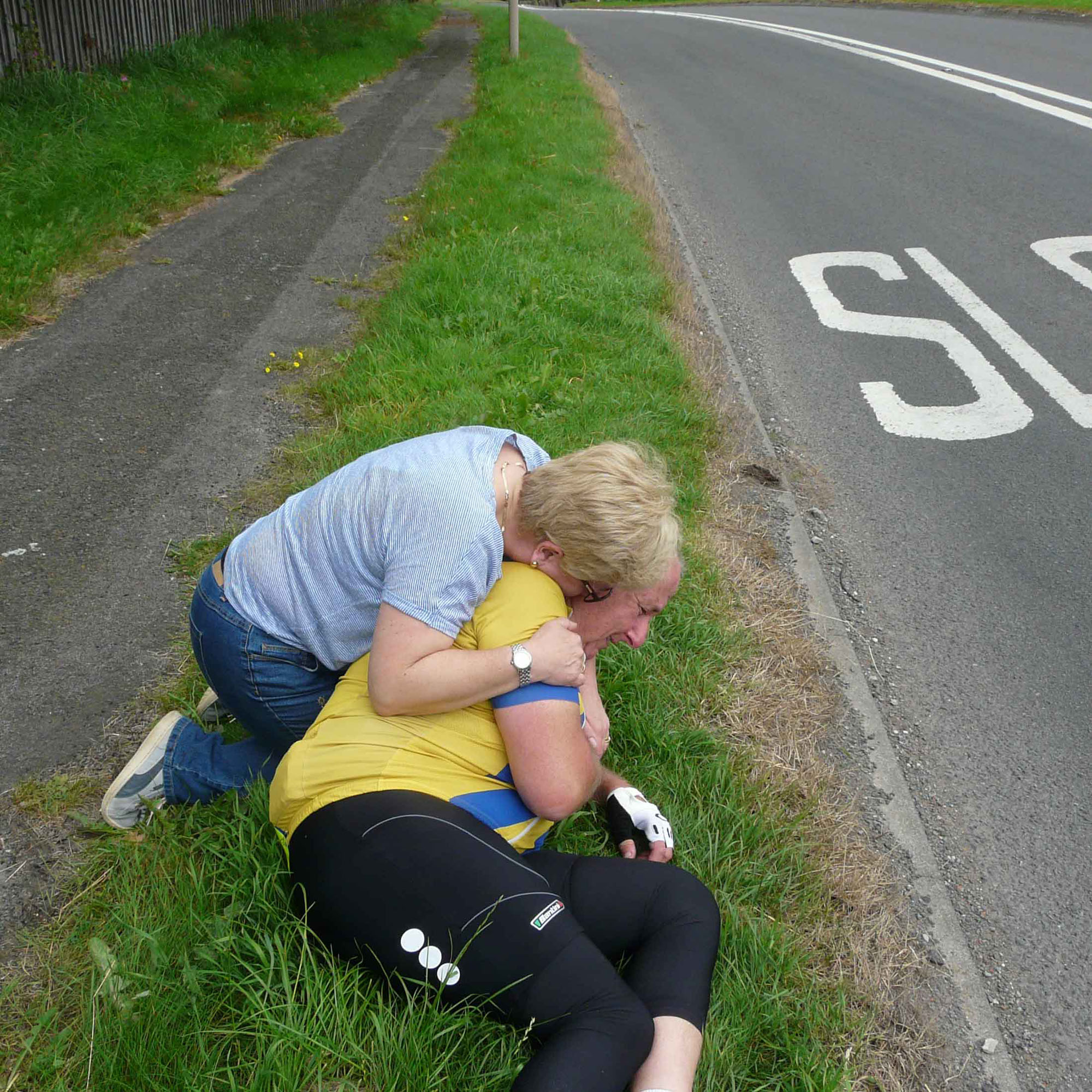 On my last full lap of the finishing circuit, Dave leant out of the van at the bottom of the climb that is ‘Alp de Barton’ [a bank that you’d just romp up normally, but after 400 miles it was like riding up Mt Everest] he shouted “last time up this”