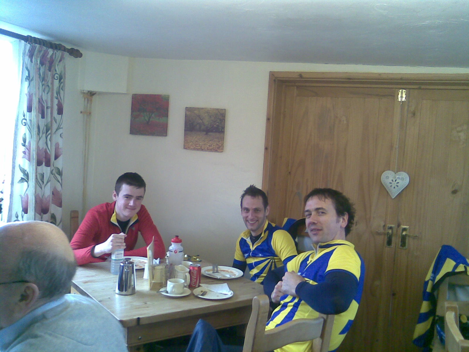 Seventeen of us made it to Summertrees: Chris, Matt, Ben (for the first time on the longer ride, and he looked very strong), Jed, Graham, Ewart, Keith, Julian, Max (back from Oz), Dylan, Richard Munro, Alan, Peter, Kev and me – Craig and Kevin C. got there but didn’t stop. Great riding from teenagers Dylan and Matt, but we’re getting used to that!