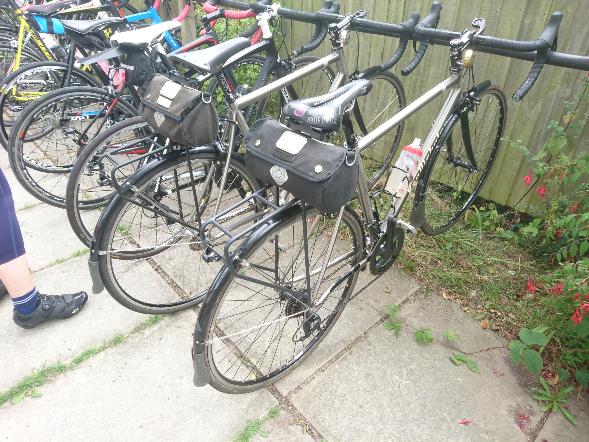 We thus prepared to leave, and whilst doing so, admired Dave and Caroline’s matching steeds. Same bottles, same bells, same saddlebags. Only the gears differing.