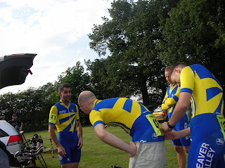 Just so unlucky, 2 punctures in the space of 2 miles between 3 riders! What are the chances of that? I wouldn't have minded puncturing in the first couple of miles, but not the last, after all that suffering hanging on to Dave McKay's back wheel. I did occassionally struggle to the front for a short stint out of sheer embarrassment, and I was shattered when I got home.