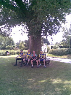 A perfect hot day and 13 of us set off to the Lock Cafe at Whitchurch. Nine of us got there. We worked out that excluding me and Jed (we’re the relative youngsters) the average age was 64. Amazing. The normal quality of banter was enhanced by Richard Heywood’s return to the fold. Richard, removing hair is depilating not dilapidating, I know because I’ve just looked it up in the dictionary. And you’re right, those nuns are scary. On the way back Jed undermined the normal work ethic of a WVCC clubrun by suggesting not only a second stop at Marbury for a cold beer (see above); but also a third stop for an ice cream at the Venetian cafe – I was the only one to agree to this last stop as the others clearly felt, with some justification, that if they stopped once more they wouldn’t be able to get going again. A hot day, a brisk ride, and Cheshire (and Shropshire, which we rode through too) looked truly beautiful. Once again, commiserations to you lot in offices. I’ll be joining you soon, so I intend to make the most of my last few weeks of freedom! …posted by Eleanor.