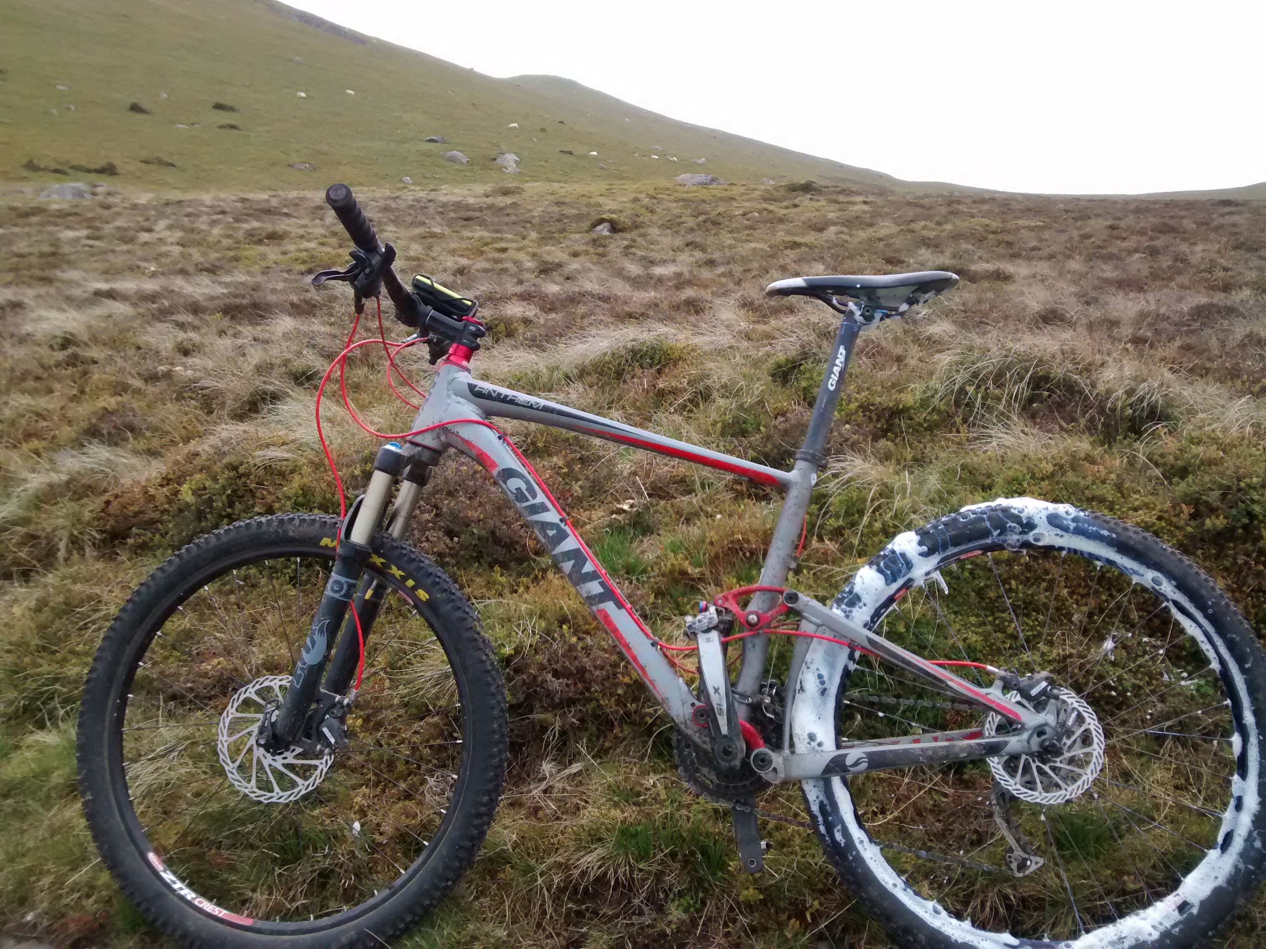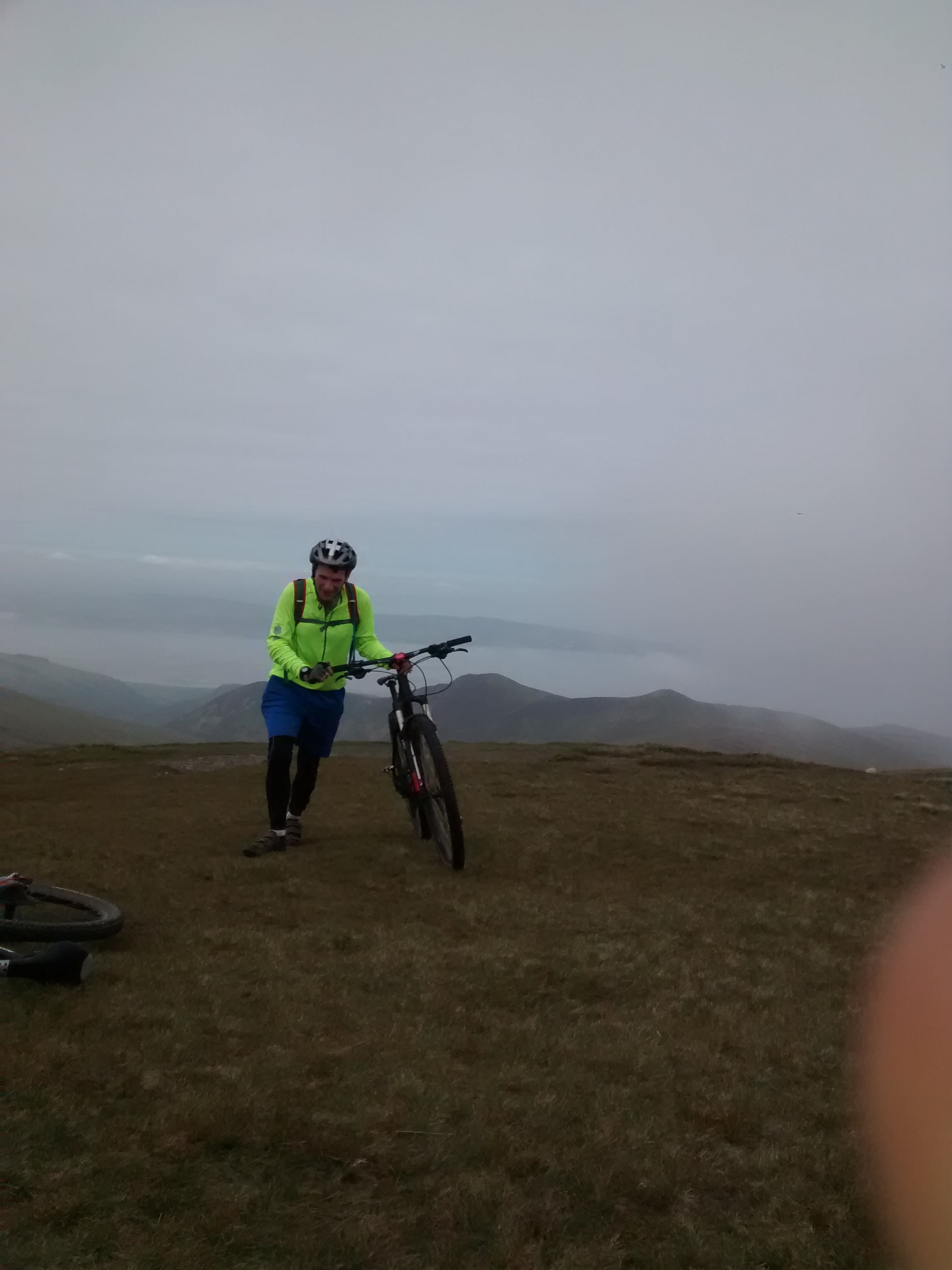 As 24 mile rides go, that was an epic. Paul commented, (I think it was just after we’d been discussing Giles getting close to bonking and the fact that we were just over half way round, some 3 hours into the ride) there’s no flat bits at all, and that general trend continued right back to the cars at Conway. It did become a bit quicker later on, due to the first 10 miles being primarily uphill with 6.5 mile of that coming all in one lump from Rowen to Drum mountain. Of course what goes up must come down and from the peak of the ride, with views over the Menai Straits and the east end of Anglesey we battered down, first a properly rocky double track interspersed with waterbars and drainage channels then typically Welsh mountain sheep grazing fields for 3.5 miles. 15 minutes, even at up to 30mph doesn’t do much to increase to increase a low average speed though, especially when you have to stop to repair multiple pinch punctures. Not only tubes, but also my usually reliable tubeless tyres couldn’t deal with the punishment, spitting their sealant all over the hill.